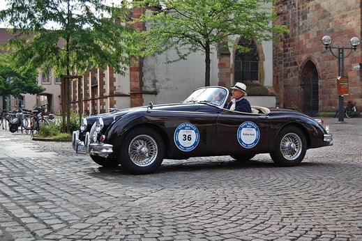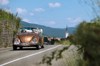 Endlose Weinberge und dazwischen malerische Weindörfer und enge Straßen, die sich durch Winzerdörfer und die Gegend schlängeln und zur Fahrt mit einem Oldtimer einladen.