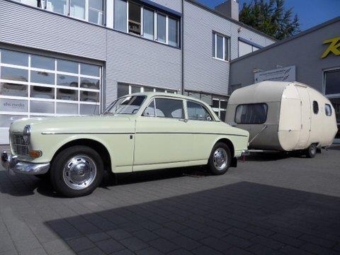 2017 via Internet als Gespann mit einem Oldtimer-Wohnwagen SMV (Bj.1965, Originalzustand, Erstlack, letztes Bj. mit Tür links vor der Umstellung auf